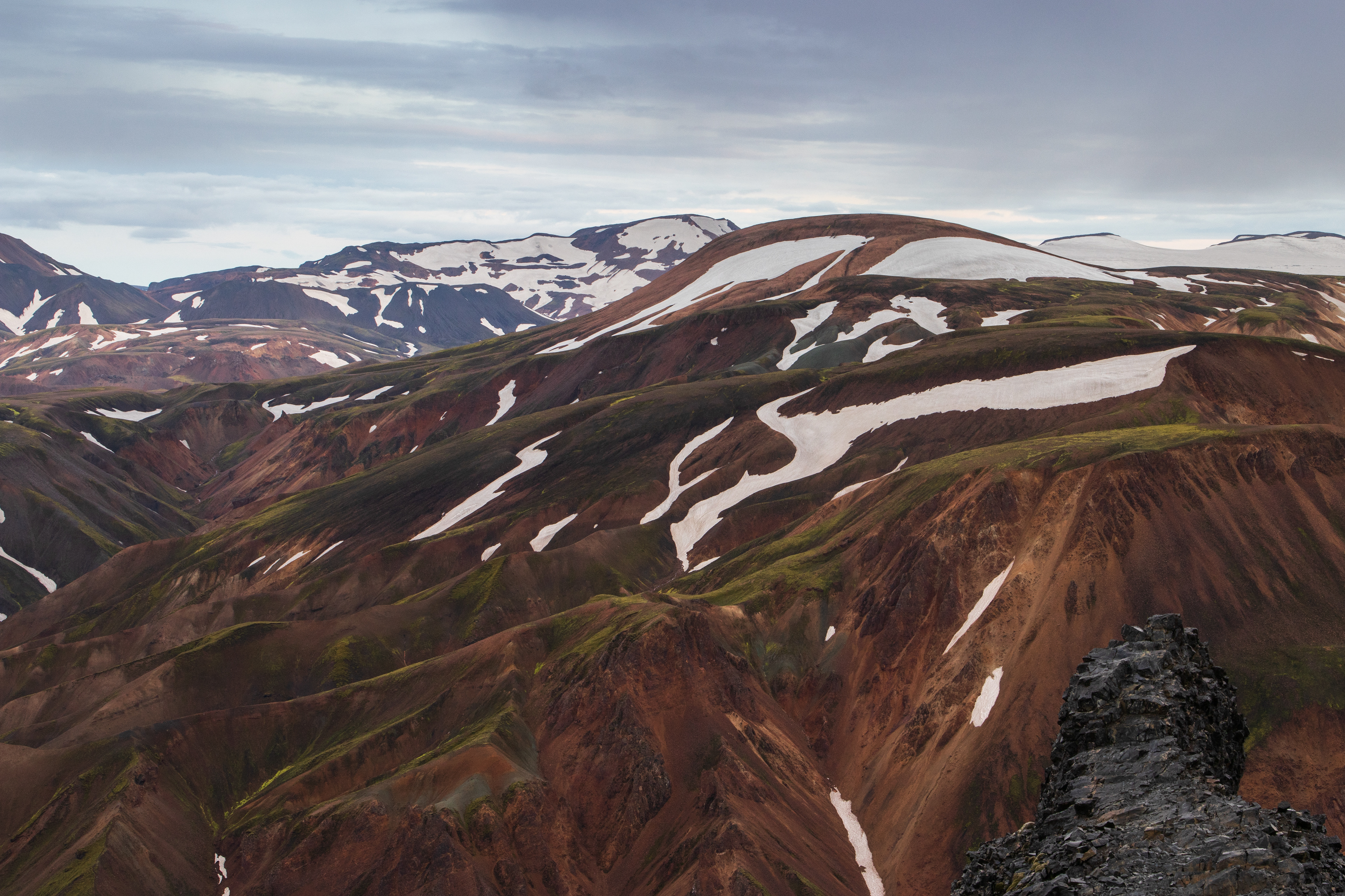Landmannalaugar region in southern Iceland is a spectacle to behold, largely due to the rhyolite mountains in the area.